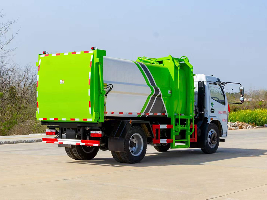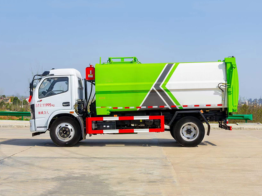 箱體有效容積約11立方米,采用邊三底四Q345錳板,弧形耐壓箱體,側裝拉桿式提升機構,可提升120L/240L垃圾桶,帶全推裝置,后門液壓鎖緊,整體密封效果好,尾部帶污水箱排污口,采用威森博樂全套液壓系統,帶電控制系統,手動室外操作。