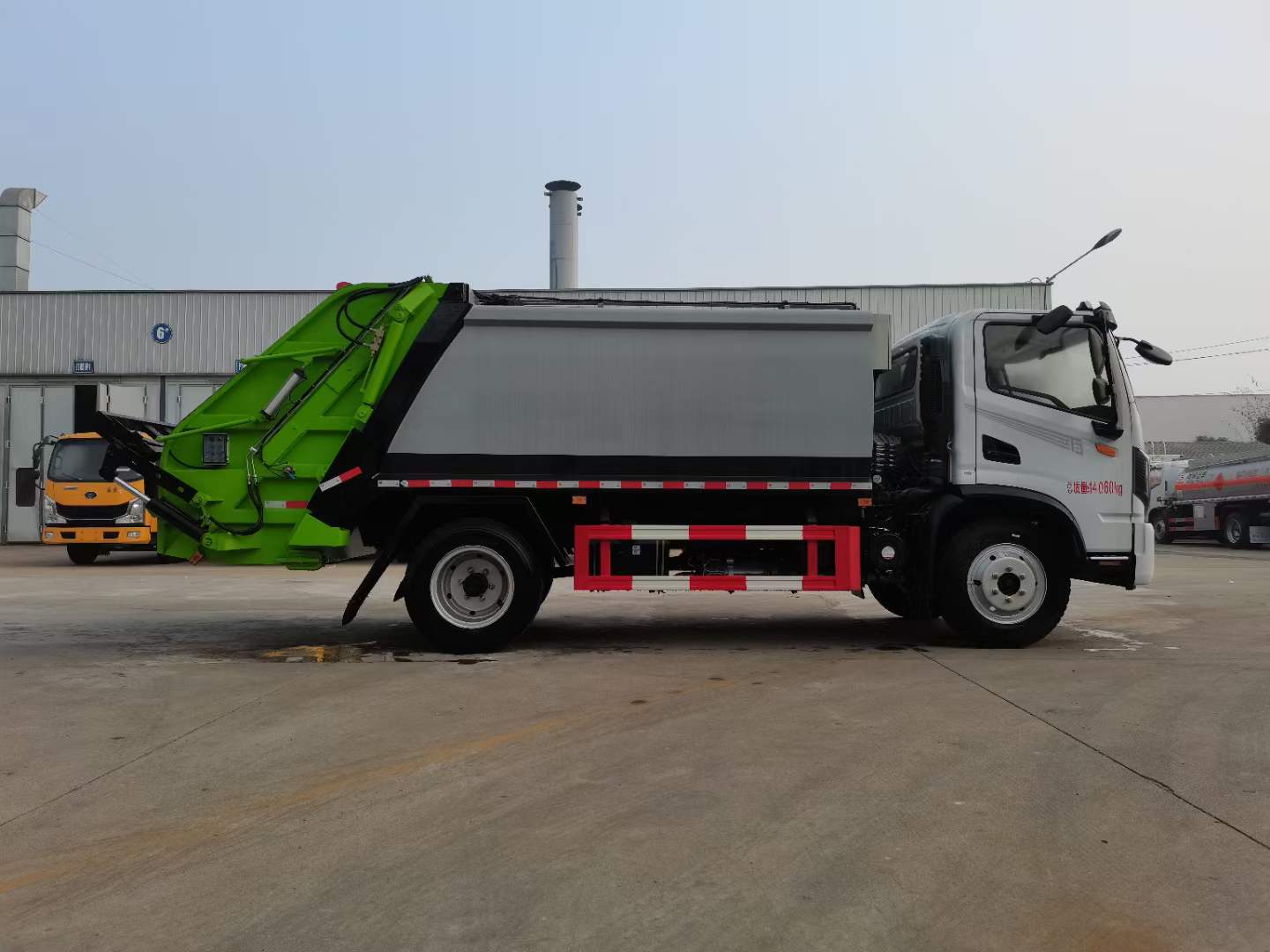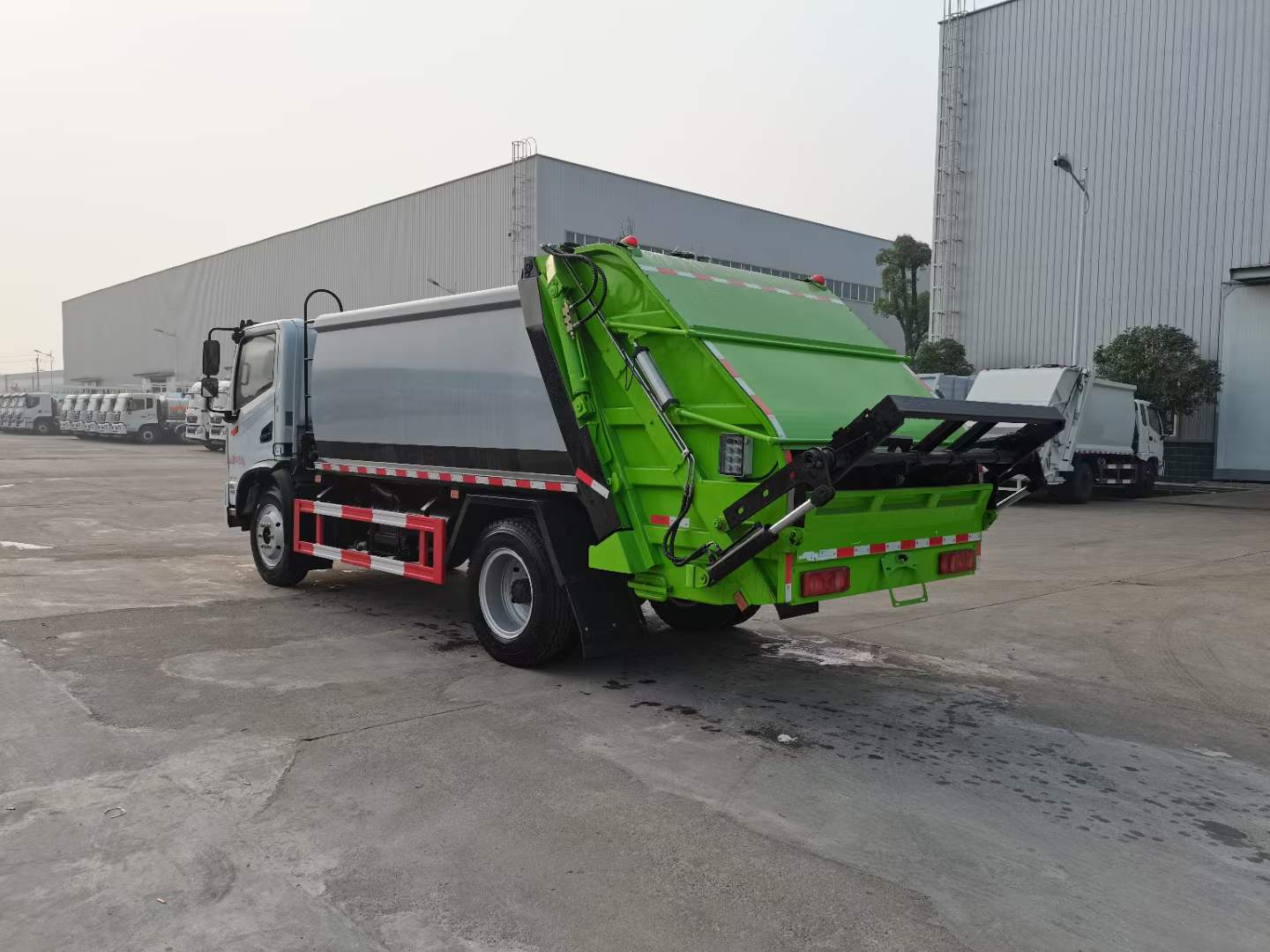 上裝配置:1,新款弧形箱體,增加箱體容積,整車更美觀,箱體為碳鋼制作,底箱及填充器采用加厚鋼板,耐腐蝕使用壽命長,一層油漆噴涂處理。2,裝載循環時間=25S;垃圾排出時間≤25S;填料提升角度≥95°,壓縮比例為1/3-1/2,一裝部分具備雙向壓縮和蠕動壓縮功能帶。3,新款結構加大填充器,手電一體操作模式,帶駕駛室操作,帶駕駛室一鍵卸料功能,3308軸距以上配遠距離遙控器,尾部裝置可以選裝垃圾翻轉斗,掛桶翻轉板或者大落地斗。4,CAN總線控制方式,光電開關加延時雙系統控制,降低故障率,方便維修。5,帶夜間照明裝置,6方)及以上車型帶雙污水箱,污水箱排水球閥和排水蓋,增加排水管,防止濺水,人性化設計。6,標配選用:威森搏樂油缸,威森搏樂多路閥,3308軸距以上配備壓實閥(背壓閥),所有車型標配單泵。5000軸距、后八輪車型標標配雙聯泵,大油量多路閥。