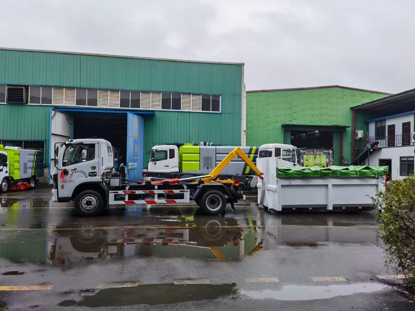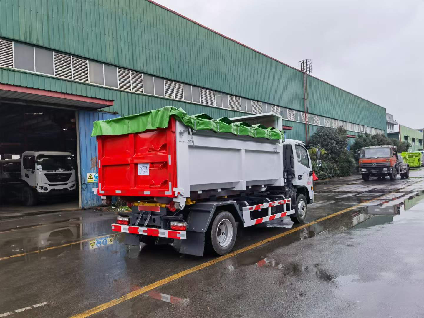 伸縮套臂:上裝部分由伸縮拉臂、主臂油缸、活動套臂、套臂油缸、附車架、翻轉架、支撐腿、鎖緊架、鎖緊油缸及多路換向閥等組成。拉臂帶伸縮功能,可以通過改變力矩和加大壓力的方式拉升更大的重量,配備垃圾斗后適合裝載建筑垃圾等重物,液壓泵為合肥皖液、多路閥、液壓鎖、平衡閥、行程閥、采用威森博樂,油缸為定制頂尖合資威森博樂品牌。