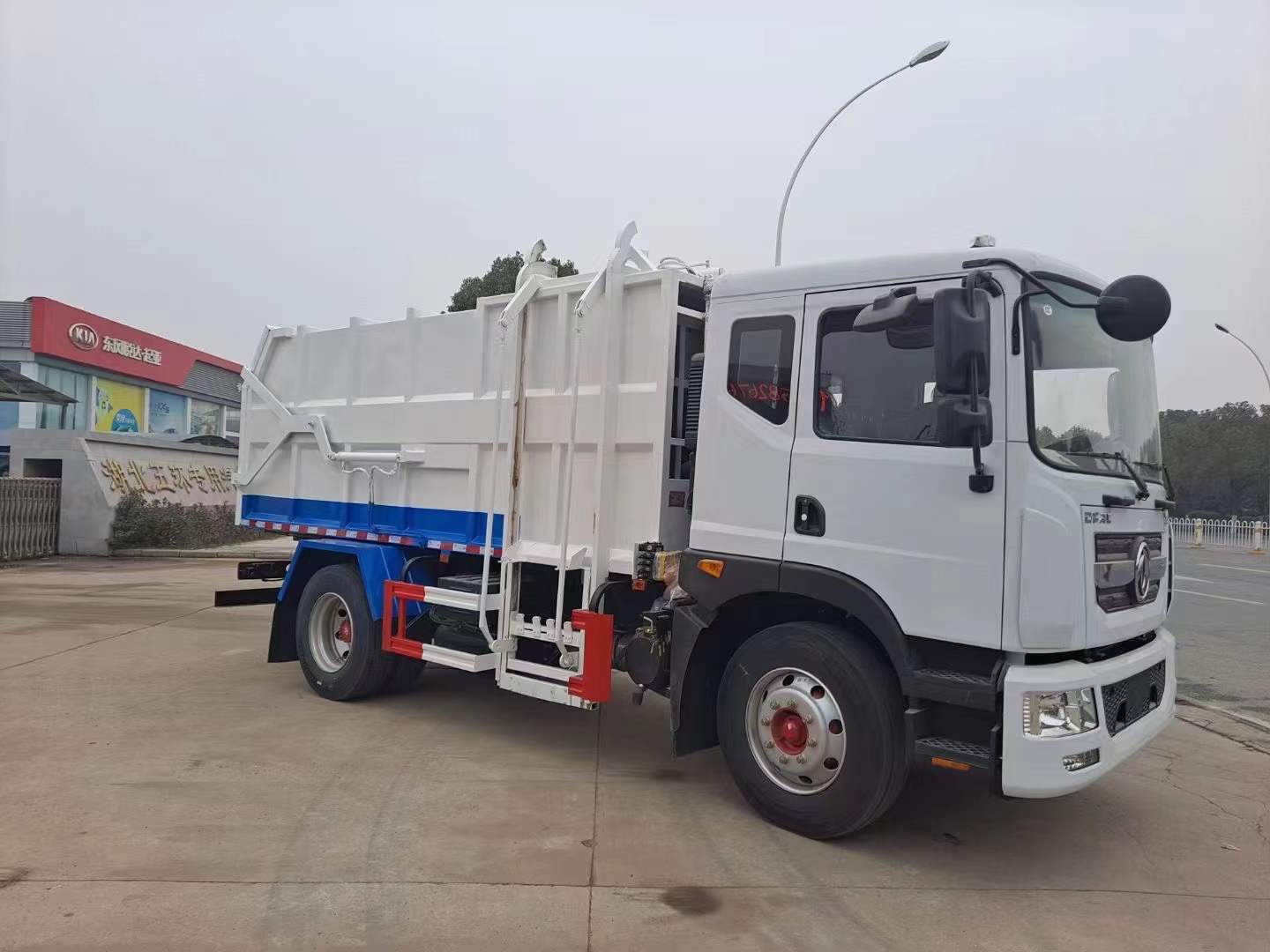 上裝配置:最大車型的掛桶圾垃車,容積大(15方),裝載量多,尾部帶剪刀式液壓開啟,更方便快捷,尾門硅膠密封條滴水不漏,拉桿式鏈條提升機可掛240L/120L標準垃圾桶。